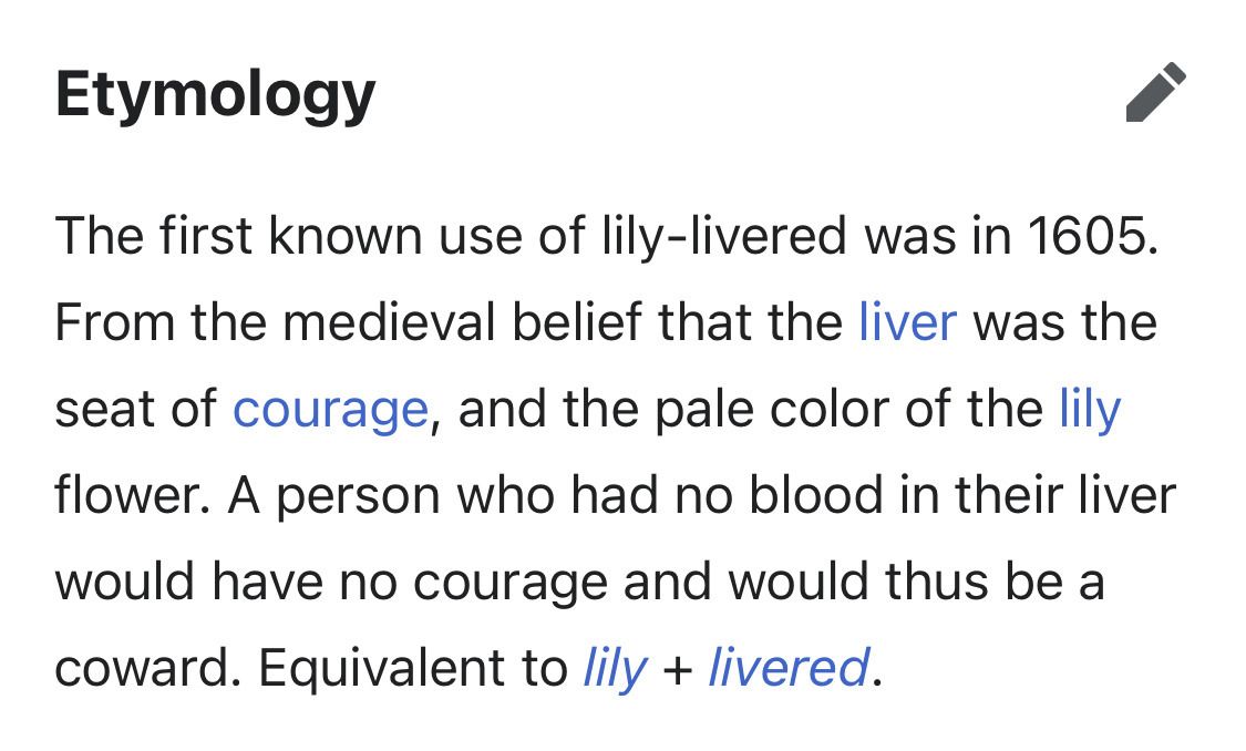 Lily-livered etymology